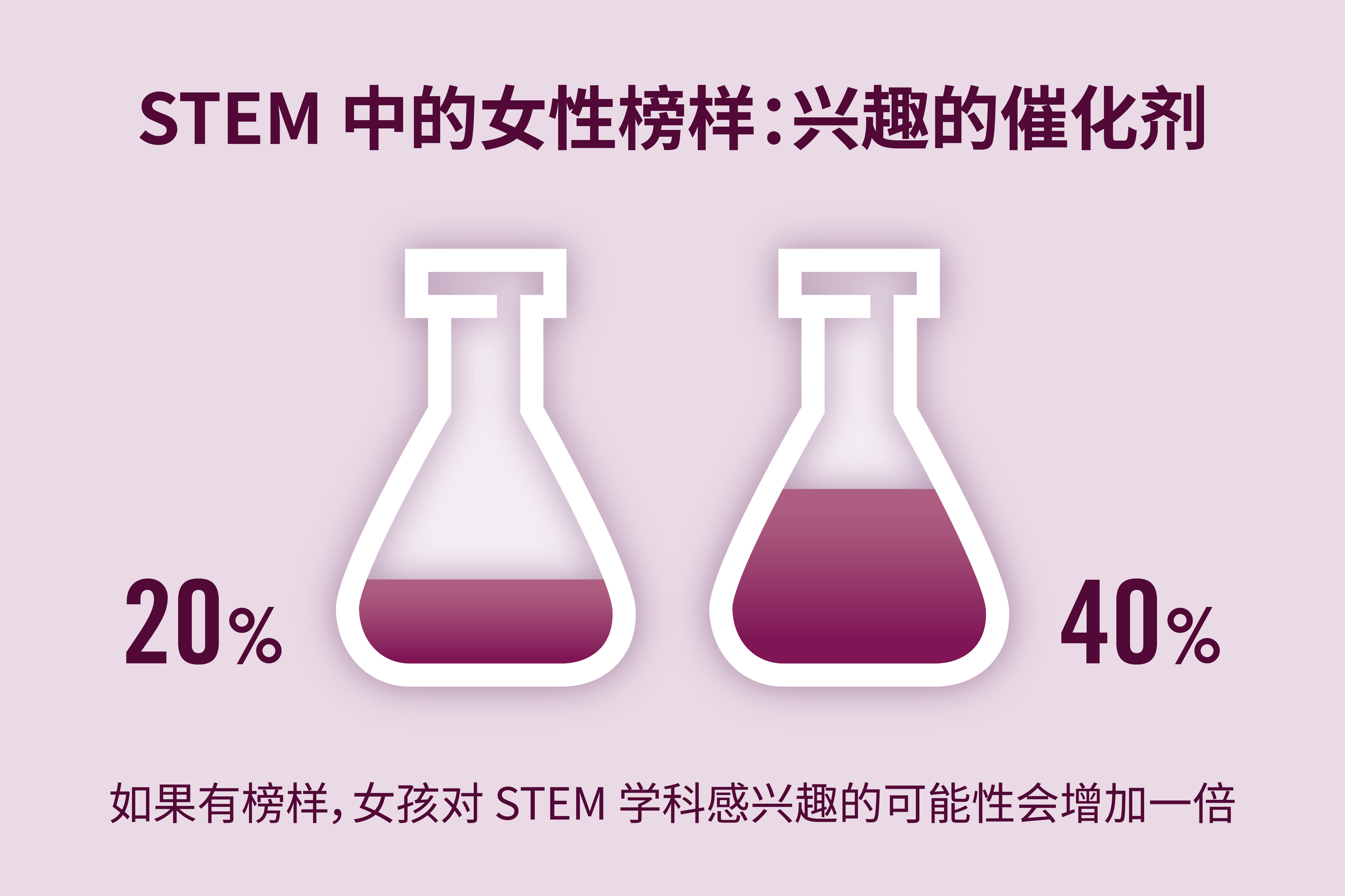 美国微软公司的一项研究表明,如果年轻女性在STEM 领域(即科学、技术、工程和数学)有榜样,大约五分之二的受访者会对这些学科感兴趣,这几乎是没有榜样的受访者数量的两倍。 此外,在这些领域有榜样的女学生对自己在 STEM 学科中总体表现的评价也高于没有榜样的女学生。这些研究表明,专家们早已达成共识:女性榜样对年轻女性未来的职业选择至关重要,并能增强她们的自信心。
